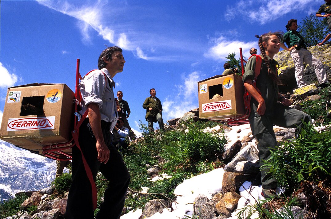 Intorno alla metà dell’Ottocento, re Vittorio Emanuele II crea una Riserva reale di Caccia destinata a diventare il nucleo dei futuri Parchi delle Alpi Marittime e del Mercantour. Tra le azioni intraprese dal sovrano c’è la reintroduzione dello stambecco, con capi provenienti dal Gran Paradiso. L’animale per un lunghissimo periodo si diffonde esclusivamente in alcune aree poste nelle immediate vicinanze del luogo di liberazione dei primi esemplari. In seguito ha inizio una lenta colonizzazione della catena spartiacque. Questo processo subisce una netta accelerazione nel 1987, quando alcuni stambecchi catturati nell’allora Parco dell’Argentera (oggi Parco delle Alpi Marittime) vengono trasferiti nella zona di Bayasse (Ubaye), nel Parco del Mercantour. Nello stesso anno in cui si procede con questo progetto transfrontaliero di ricerca incentrato sulla gestione dello stambecco, si giunge anche alla firma del gemellaggio fra i due parchi. Da allora, i molti obiettivi in comune hanno fatto sì che la collaborazione crescesse in quantità e in qualità. E la storia continua...