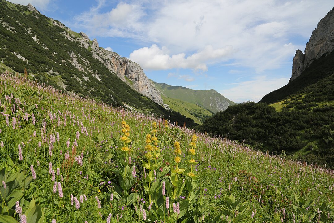 Se il Parco delle Marittime è il regno delle cime, il Parco Marguareis è quello degli abissi. Il sottosuolo è un mondo invisibile ai più (oltre 150 km di grotte finora esplorate) con labirinti di cunicoli, caverne e grandi sale che si spingono fino a 1000 metri di profondità. Alle alte quote, deserti di pietra grigia lavorati dal vento e dall’acqua si alternano a magre praterie. Più in basso, la pioggia e la neve che in primavera si scioglie colano nel profondo e a contatto con rocce meno permeabili, sgorgano in superficie con getti di grandiosa potenza.Il più spettacolare di tutti è quello del Pis del Pesio. Caratterizza quest’angolo di Alpi non solo lo straordinario mondo minerale, ma la presenza di una ricchissima flora (circa 1500 specie) che si compone di specie alpine e mediterranee (Cypripedium calceolus, Saxifraga cernua e la Viola pinnata) tra cui sono presenti diversi endemismi. E poi ci sono spettacolari boschi: lariceti, faggete e superbe abetaie. Quest’ultime sono il patrimonio di una gestione antica che risale al 1173, anno in cui viene fondata la Certosa di Pesio.