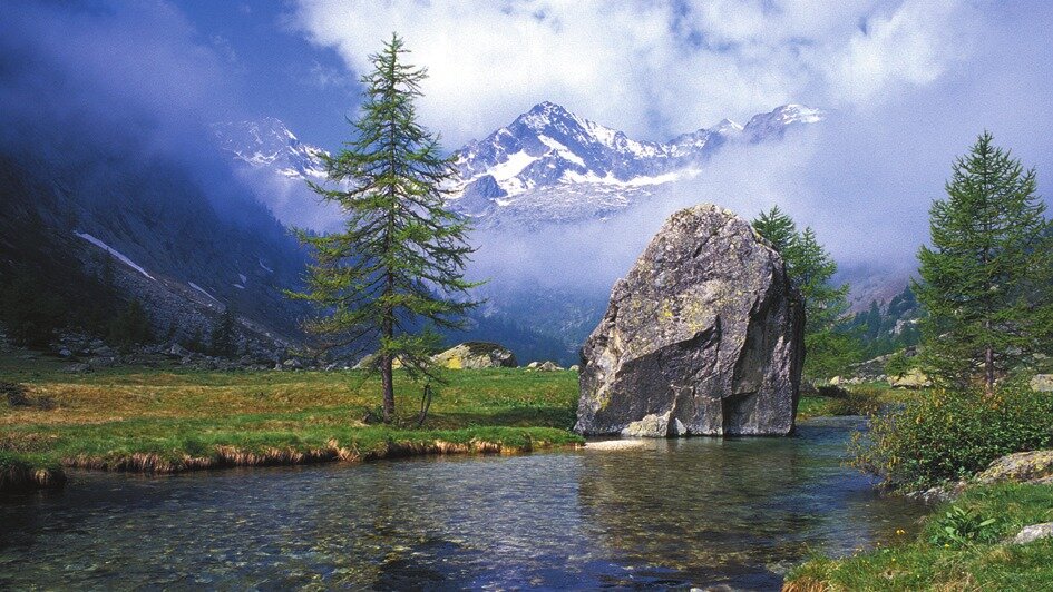 Sui versanti meno soleggiati di queste montagne rimangono alcuni resti dei grandi ghiacciai che ricoprivano le Alpi al tempo delle glaciazioni. Originari di quell’epoca sono i circa 300 laghi nelle alte valli, di colore blu intenso, e alcune specie di piante e di animali tipiche dei climi freddi.