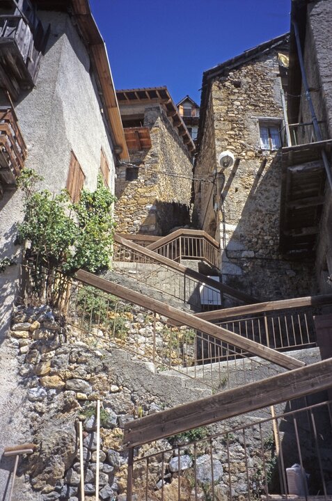 La cappella dei Pénitents Blancs, la chiesa parrocchiale di Beuil, le mura delle case fortificate, il lavatoio e il vecchio forno per il pane